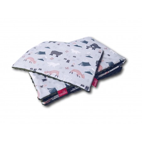 Dwustronny, ręcznie robiony kocyk wykonany jest z wysokogatunkowej przyjemnej w dotyku bawełny oraz niesamowicie mięciutkiego polaru minky. Wypełnienie wszyte na trwale w kocyk sprawia, że nie przemieszcza się ono podczas użytkowania oraz prania. Kocyk idealnie nadaje się zarówno do łóżeczka jak i do wózka czy też kołyski. Może być też wykorzystywany jako mata. Nadruk na tkaninie bawełnianej jest wykonany metodą cyfrową przez co jest bardzo trwały.