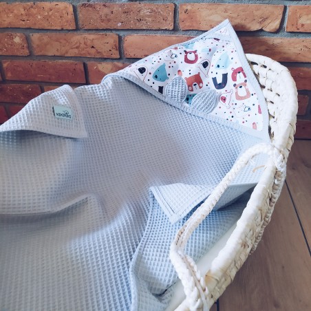 Ręcznik z kapturkiem wykonany jest z bawełny typu wafel. Oryginalność produktowi nadają urocze uszka. Świetnie sprawdzi się w domu podczas kąpieli jak również na plaży czy basenie. Ze względu na swoje właściwości nadaje się dla alergików. Ręcznik posiada wszyty sznurek dzięki któremu można go bez problemu zawiesić.