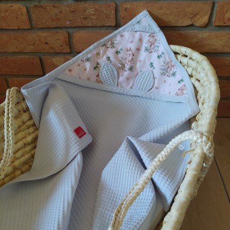 Ręcznik z kapturkiem wykonany jest z bawełny typu wafel. Oryginalność produktowi nadają urocze uszka. Świetnie sprawdzi się w domu podczas kąpieli jak również na plaży czy basenie. Ze względu na swoje właściwości nadaje się dla alergików. Ręcznik posiada wszyty sznurek dzięki któremu można go bez problemu zawiesić.