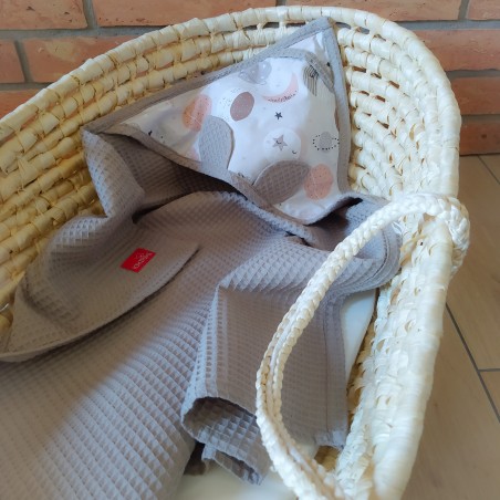 Ręcznik z kapturkiem wykonany jest z bawełny typu wafel. Oryginalność produktowi nadają urocze uszka. Świetnie sprawdzi się w domu podczas kąpieli jak również na plaży czy basenie. Ze względu na swoje właściwości nadaje się dla alergików. Ręcznik posiada wszyty sznurek dzięki któremu można go bez problemu zawiesić.
