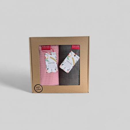 Zestaw składa się z dwóch ręczników, zapakowanych w pudełko z okienkiem. Ręczniki świetnie sprawdzi się w domu podczas kąpieli jak również na plaży czy basenie. Ze względu na swoje właściwości nadają się dla alergików. Ręczniki posiada wszyte sznureczki dzięki którym można je bez problemu zawiesić. Idealnie nadają się na prezent.
