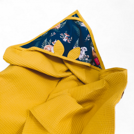 Ręcznik z kapturkiem wykonany jest z bawełny typu wafel. Oryginalność produktowi nadają urocze uszka. Świetnie sprawdzi się w domu podczas kąpieli jak również na plaży czy basenie. Ze względu na swoje właściwości nadaje się dla alergików. Ręcznik posiada wszyty sznurek dzięki któremu można go bez problemu zawiesić.