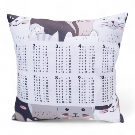 Ze względu na oryginalne wzornictwo świetnie sprawdzi się jako niepowtarzalny prezent. Poduszka jest idealna zarówno dla małych dzieci jak i nastolatków. Dzięki nadrukowanej tabliczce mnożenia pełni świetną rolę edukacyjną.