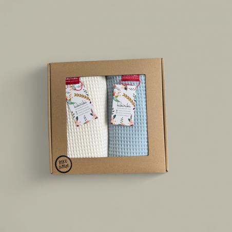 Zestaw składa się z dwóch ręczników, zapakowanych w pudełko z okienkiem. Ręczniki świetnie sprawdzi się w domu podczas kąpieli jak również na plaży czy basenie. Ze względu na swoje właściwości nadają się dla alergików. Ręczniki posiada wszyte sznureczki dzięki którym można je bez problemu zawiesić. Idealnie nadają się na prezent. Dostępne są różne rozmiary. Jeżeli potrzebujesz innego rozmiaru niż te dostępne na stronie napisz.