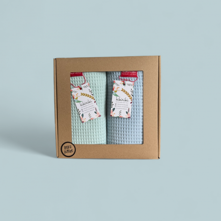 • Komplet ręczników waflowych 70x100 - błękitny +mięta