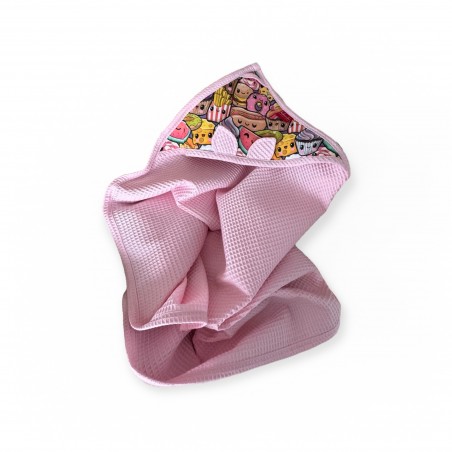Ręcznik bawełniany z kapturkiem bawełna wafelek 100x100 - jasny róż + food