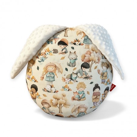 Dwustronna, ręcznie robiona poduszka wykonana z wysokogatunkowej przyjemnej w dotyku bawełny oraz niesamowicie mięciutkiego polaru minky. Oryginalności nadają jej urocze uszka. Nadruk na tkaninie jest bardzo trwały przez co nie spiera się oraz nie traci swoich właściwości po wielokrotnym praniu. Bawełna nie barwi za sprawą czego połączenie dwóch kontrastujących ze sobą kolorów nie stanowi najmniejszego problemu. Możliwość prania całej poduszki sprawia, że w łatwy i szybki sposób można zadbać o jej czystość.