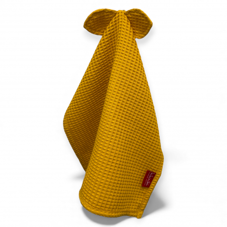 Uroczy bawełniany ręczniczek z uszkami wykonany jest w 100% z bawełny typu wafelek, która posiada certyfikat OEKO-TEX Standard 100. Jego wygląd zachęci każde dziecko do codziennej higieny. Idealnie sprawdzi się podczas codziennego użytku w domu jak również w przedszkolu czy też żłobku. Jako, że jest mały i zajmuje mało miejsca będzie idealny na podróż. Rozmiar ręcznika jest dostosowany zarówno dla młodszych jak i starszych dzieci, jeżeli potrzebujesz innego rozmiaru napisz a prześlemy Ci wycenę.