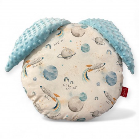 • Poduszka z uszkami - kosmos biały - błękitne minky